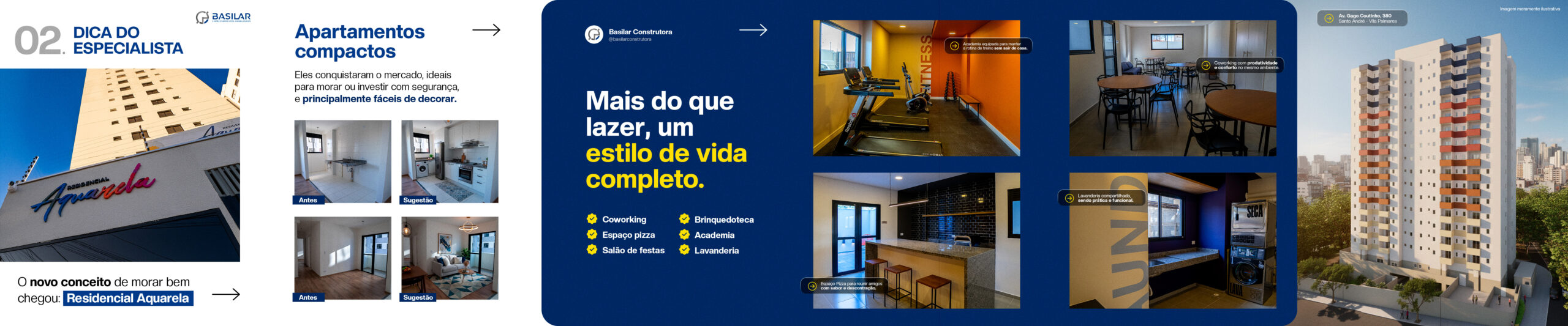 O Residencial Aquarela Santo André by Basilar reúne muito bem essa expectativa, com apartamentos de 42m² e 45m², dois dormitórios, em boa localização de Santo André.